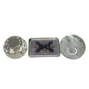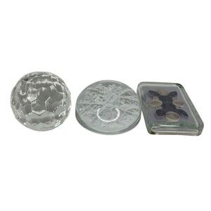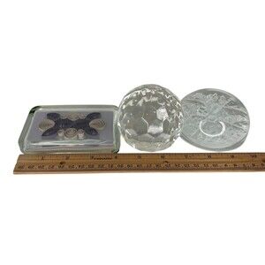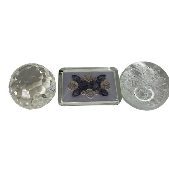 Vtg Mixed Crystal Glass Art Paperweight Lot of 3 Paper Quilled, Faceted, Domed