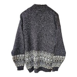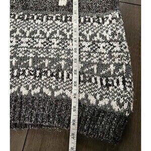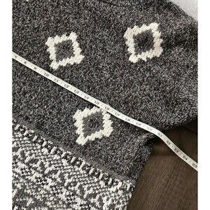 Embrace the vintage charm with this lovely gray wool blend tunic sweater. The high neck and long sleeves exude a classic vibe, while the Aztec pattern and tight-knit fabric add a touch of unique style. Perfect for the grandma core and 80s themed outfit, this pullover sweater is made of acrylic material and comes in size Large. Small pulling as shown. Not very noticeable. Good condition. Has a wool look as shown