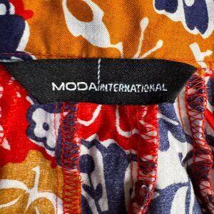 In a land of vibrant color and swirling patterns, this Moda International skirt tells a tale of elegance and grace. Its full A-line silhouette dances with joyous floral motifs in rich hues. The comfortable drawstring closure whispers of relaxed afternoons and carefree adventures, making every moment feel like a story waiting to unfold.