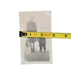 Vtg Mom & Baby Posing on Cold Day Original Monochrome Photography Found Snapshot