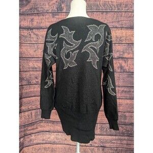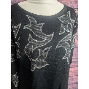 Vtg Mondi Germany wool Blend Sweater/dress Metallic Silver Black Sz 38/Med