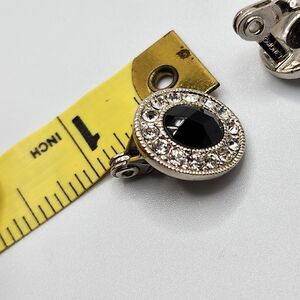 Vtg Monet Faceted Black Rhinestone Silver Tone Faux Diamond Halo Clip Earrings. In excellent condition! Very little signs of wear. Please see pictures for more details.