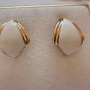 Vtg Monet Gold Cream White Enamel Kite Shape Pierced Earring excellent condition