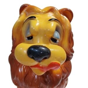 Vtg Money Lover Bank Hungry Lion 1971 New York Vinyl Production Comp coin Bank change piggy bank. No stopper plig on bottom. Still has original sticker on his butt. Made os a hard durable Unbreakable plastic. Please see all pictures for details and condition.