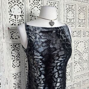 Vtg Monkey Wear Crushed Velvet Snake Skin Print Whimsygoth Grunge Boatneck Sleeveless Dress Sz Small