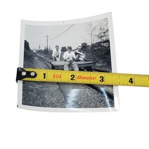 Vtg Monochrome Photography Men Sitting on Railroad Cart Found Snapshot