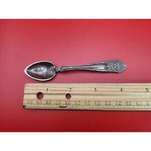 The product is a vintage souvenir collectors spoon from O.V.M. Denmark, featuring a design commemorating the 1887 Moorhead State College in Minnesota. Made of silverplate, this elegant spoon is a unique collectible item that showcases both historical and cultural significance. Its intricate details and craftsmanship make it a charming addition to any souvenir spoon collection.