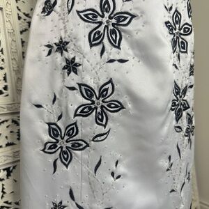 Vtg Morgan & Co Black & White Y2K Beaded Floral Embroidered Formal Prom Dress