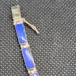 Vtg Morita Gil Sterling Silver Lapis Bracelet in Box and unmarked Ring and Bar Earrings