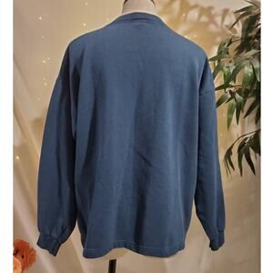 Vtg Morning Sun Bird Button Sweatshirt Womens Size L Granny Blue Pockets Cabin