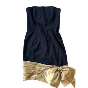 Vtg Morton Myles Warrens Metallic Pleated Bow Formal Dress Black Gold Size 8