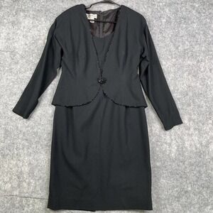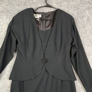Vtg Morton Myles for The Warrens Dress Long Sleeve 14 Black Empire Accents