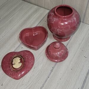Enhance your home decor with this elegant red marble decorative jar set. Perfect for adding a touch of sophistication to any room.