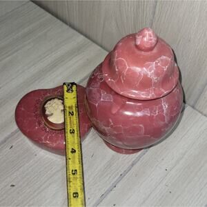 Vtg 60s Mount Clemens Cameo Pottery Elegant Faux Marble Decorative Jar Vanity Table Set Powder Set Victorian Retro Makeup GrandmaCore Titanic