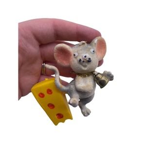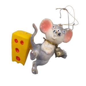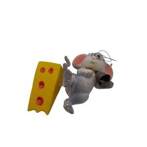 Vtg Mouse & Cheese Christmas Ornament Flocked Velvet Nursery Rhyme Theme Tree
