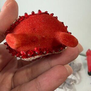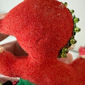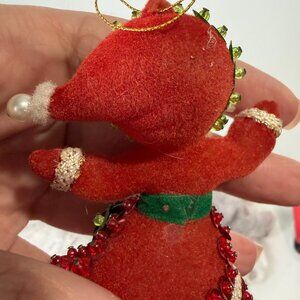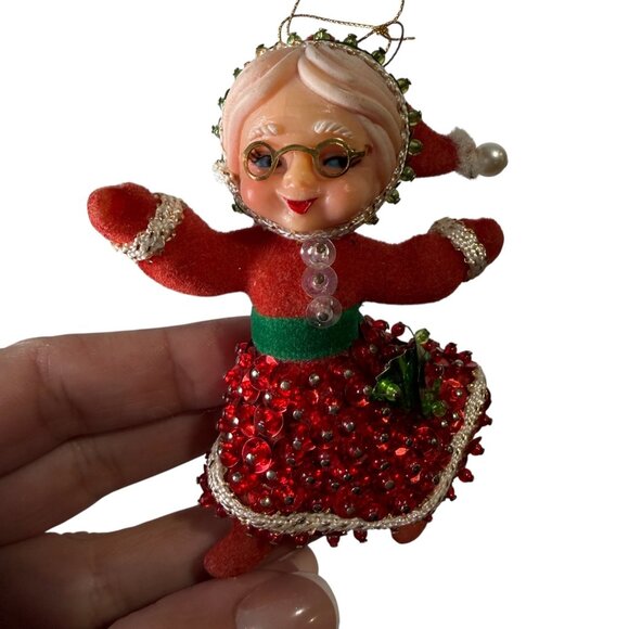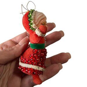 Vtg Mrs Claus Christmas Ornament 1960s-1970s Mod Red Sequin Beads Art Flocked