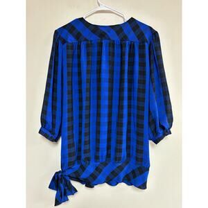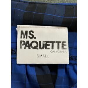 Vtg Ms. Paquette top shirt blouse blue black plaid 3/4 sleeves lightweight S