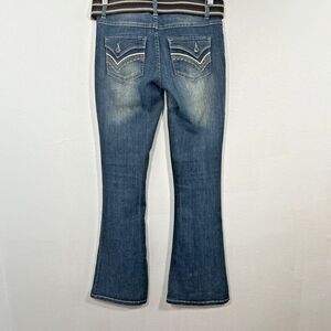 Vtg Mudd Jean Teen Youth 5 Blue Whiskering Bootcut Embroidered Pockets Denim Y2K