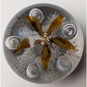 Vtg Murano Style Flower Paperweight 3.25" Controlled Bubble Art Glass Rootbeer, minimal knick in glass, see pics for details, good condition.