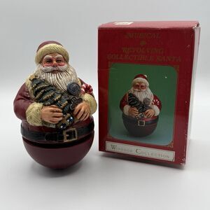 Vtg Musical Revolving Santa 7” Windsor Collection Roly Poly Video Works Wind 90s
