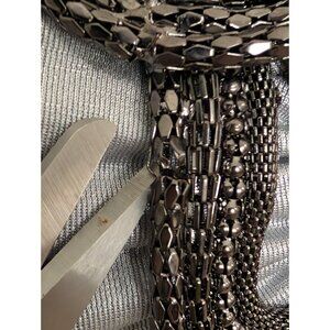 Stunning in person. A couple small flaws. A small area in the chain mail has separated. Not noticeable at all when wearing. There are a couple loose strings on the inside on the top. Once again not noticeable at all when wearing. See all pics for details. Message with any questions. 17