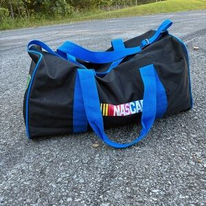 Vintage 90s NASCAR WBNA black multicolor duffle bag. Excellent condition. 20” x 9.5” x 10” with a 18+” strap drop. Has a top zipper closure, double handle straps, adjustable shoulder strap, lined, graphic on every side.