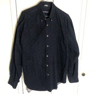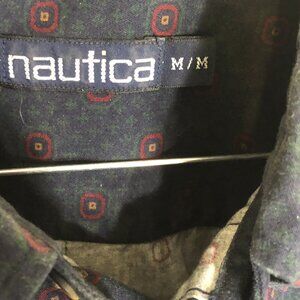 Vtg NAUTICA Shirt M Navy Red Green Pattern Long Sleeve Button Up 100% Cotton USA