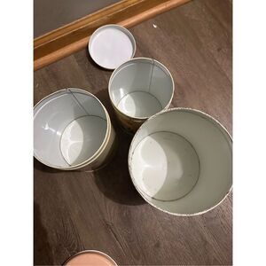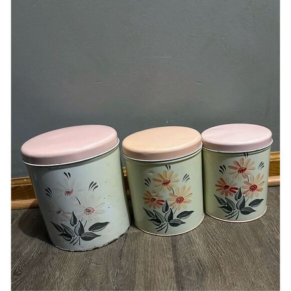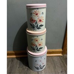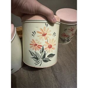 Vtg NC Colorware 60s Metal Kitchen Canister Set of 3 Flowers Beige Peach MCM