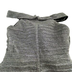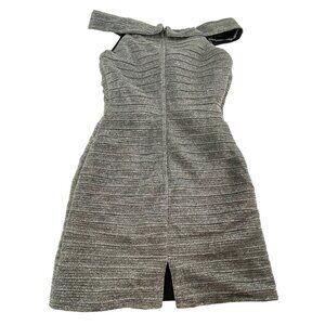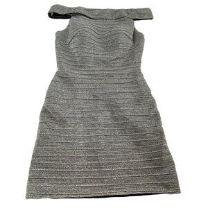 The NINA CANACCI Women's Off the Shoulder Mini Dress in Silver is a vintage piece perfect for a cocktail wedding or formal occasion. This sleeveless dress features a solid pattern with beaded accents and a zipper closure. The short dress length and sheath style make it a timeless and elegant choice for any season. Made of polyester and lined for added comfort, this size 10 dress exudes a classic and sophisticated look that is sure to turn heads.