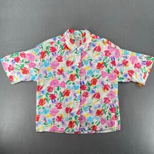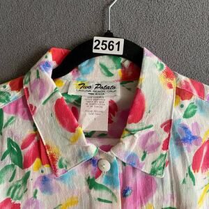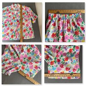 Vtg NOS 80s 90s Two Potato Resort Wear Button Down Shirt + Shorts Set S Floral