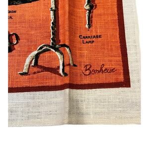 Add a touch of vintage charm to your kitchen with this Kay Dee Designs Handprints Linen Tea Towel. Featuring the Colonial Lighting pattern, this rectangular tea towel measures 17 x 30" and is made of high-quality linen material. The orange color and primitive design bring a rustic feel to any kitchen setting, perfect for all occasions. It is signed Bonheur in the corner of the pattern.