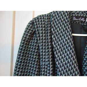 Great dress coat for the season. In a great black and gray check with button closure. Shoulder pads that could be removed. Stylish and warm. Measurements: seam to seam 22 inches and length from shoulder to hem is 32 inches. New with tags.