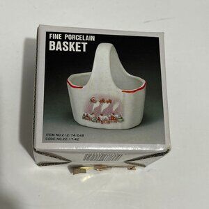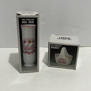 Vtg NWT Porcelain Christmas Bud Vase Basket Set Miniature Santa Sled 2 Piece Box