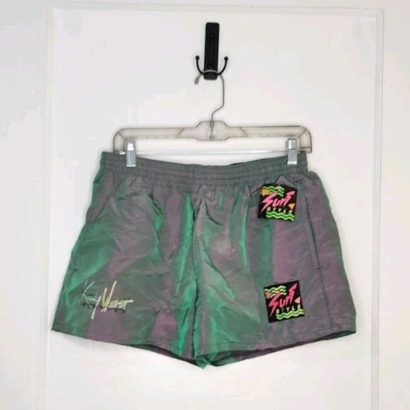 Vtg NWT Surf Style Size Large Lined Swim Trunks Shorts Iridescent Key West Logo
