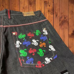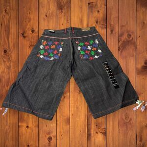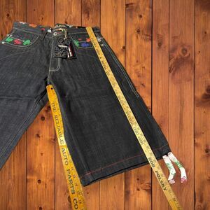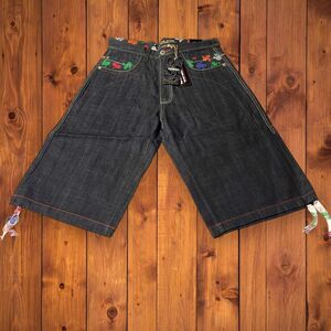 Vtg NWT Sz 34 Koman Denim Black Jeans Shorts Embellished Pockets Y2K Hip Hop