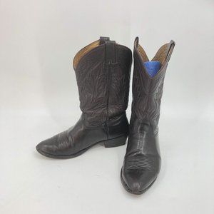 Vtg Nacona Boot Oxblood Leather Flame Stitch Cowboy Western Mens Sz 9.5D Rodeo
