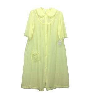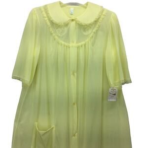Vtg Nancy King Lingerie Housecoat Women's M Short Sleeve Lace Trim Button Front