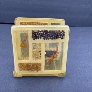 Vtg Napkin Holder 70's Lucite Resin Acrylic Seeds Flowers Farmhouse Granola