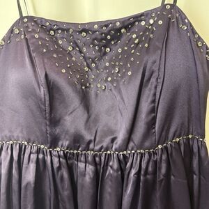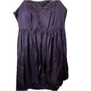Vtg Narianna Satin Bubble Hem Strapless Dress Beaded Jr XL Purple Y2K Whimsigoth