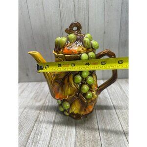 Vtg Nasco Swirling Leaves Grapes Tea Pot & Creamer Sugar Set MCM Japan 8", 4.5"