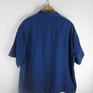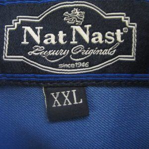 Vtg Nat Nast Luxury Originals Mens XXL Blue Geometric Silk Cotton SS Camp Shirt