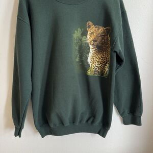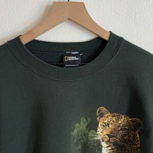 Vtg National Geographic Sweatshirt Mens Medium Green Leopard 2004 Joe Blow Retro