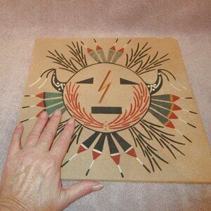 Vtg Native American Navajo Sun Eagle Sand Painting Signed Wall Art Atsa Diné 12"