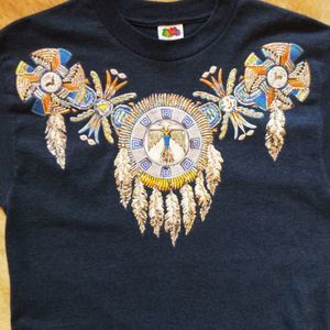 Vtg Native American Shirt Sz Med Handmade Fruit Loom Dreamcatcher Eagle Feather