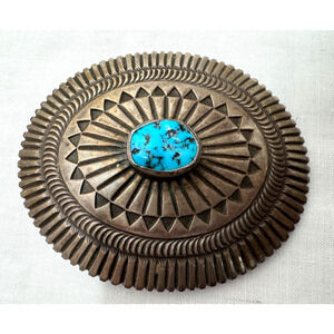 Vtg Native American Turquoise Belt Buckle Navajo Sterling Silver Signed 'M' 86gr