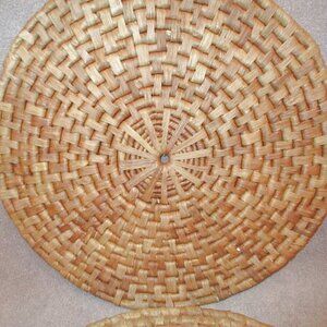 Vtg Natural Round Woven Rattan Placemats 15" Thick Weave MCM Wall Decor 2X Lot