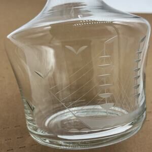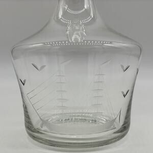 Vtg Nautical Decanter Clear Glass Liquor Wine Bottle Etched Clipper Ship Stopper