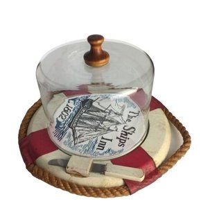 Vtg Nautical Ships Inn Rope Covered Cheese Dish