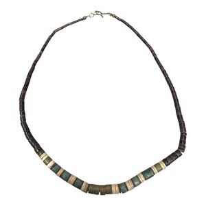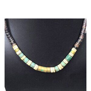Vtg Navajo Heishi Turquoise & Shell Beaded Necklace Native American Artisan 17"