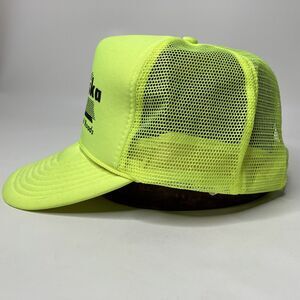 A vintage Nebraska Department of Roads hat or cap, neon yellow with mesh back and snapback. Foam front. Made by Nissin. Item in clean, preowned condition. Please see photos for complete description.